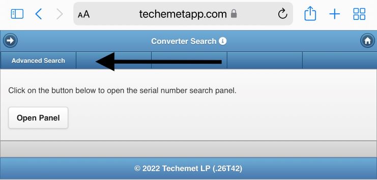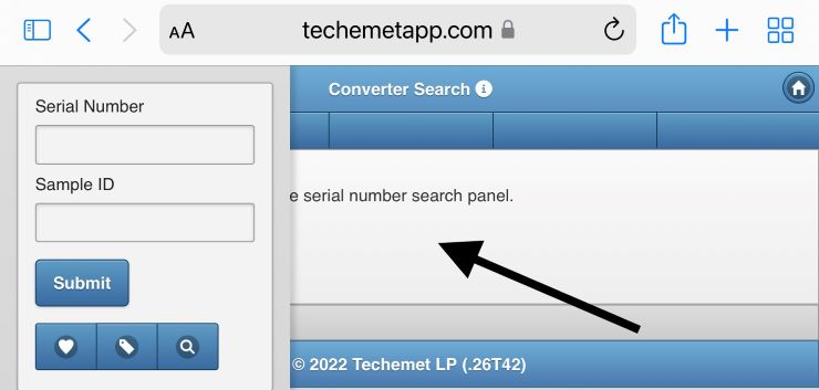 • You can use a serial number or part thereof in conjunction with the other search criteria if you cannot find the converter in the converter search section.