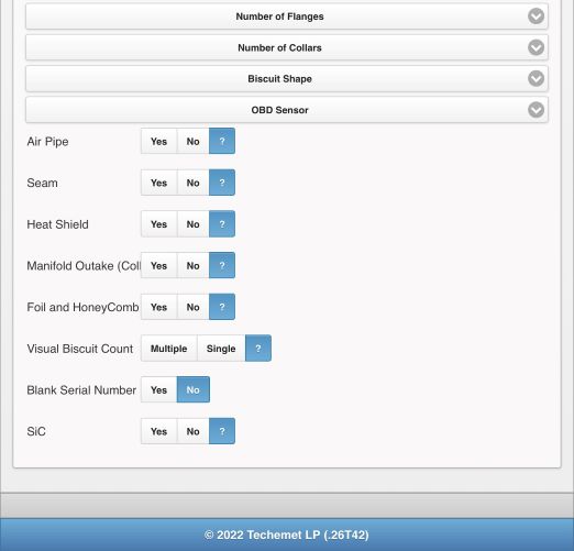 23. SiC – This field refers to silicone carbide, which is only found in diesel units. Select yes or no.