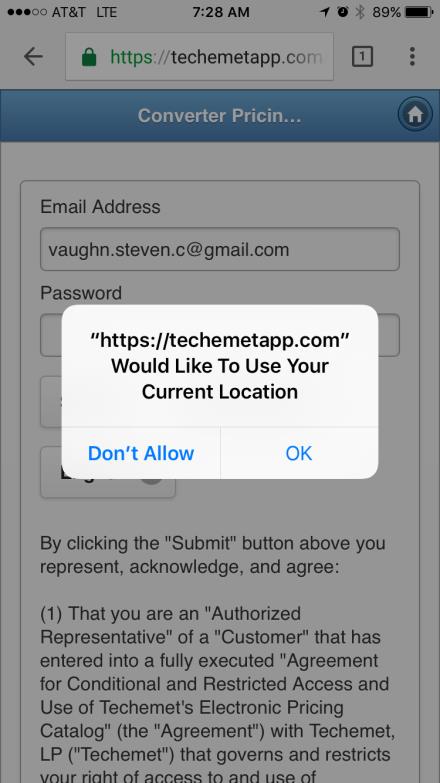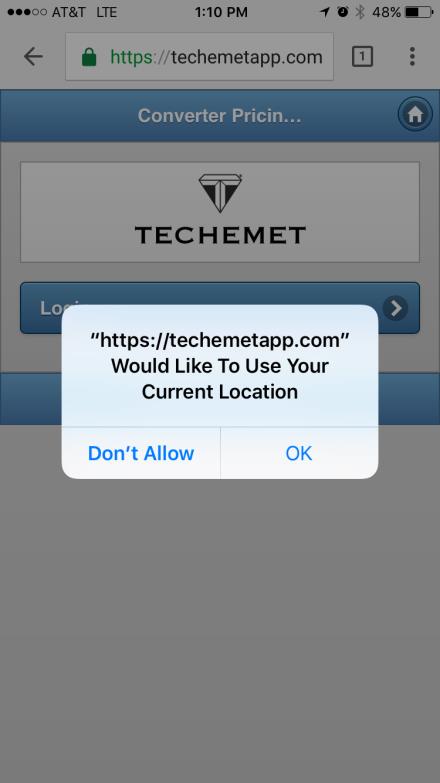 You will see a pop-up to request your current location you will need to accept this by selecting ok.