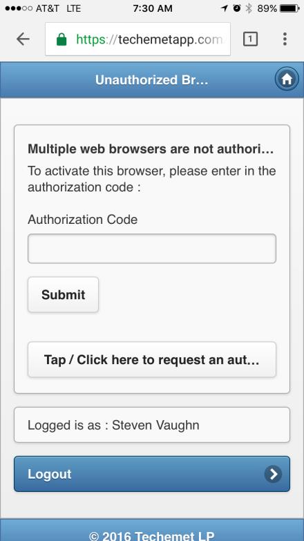 If you have not authorized this Browser yet you will receive this prompt. To authorize please request an email to be sent with the Auth code. If you have authorized the Browser and receive this prompt you have either cleared your cookies by deleting your web history or have authorized one or more browsers over your allotted amount.