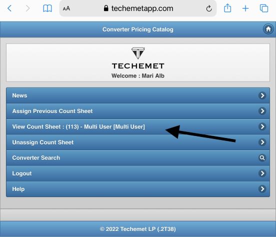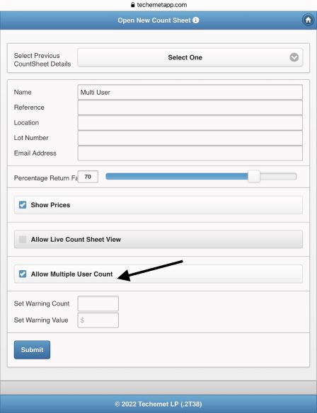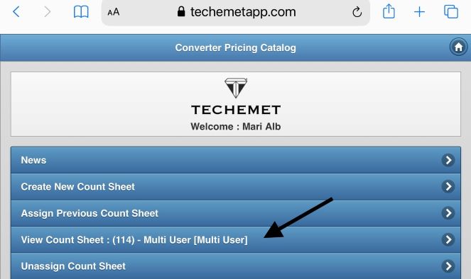 1. Create a Count Sheet OR you can assign a previously created count sheet. Please refer to the Create New Count Sheet document under the Help section. When creating the Count Sheet, tap the Allow Multiple User Count to allow multiple users to add converters to this Count Sheet.
