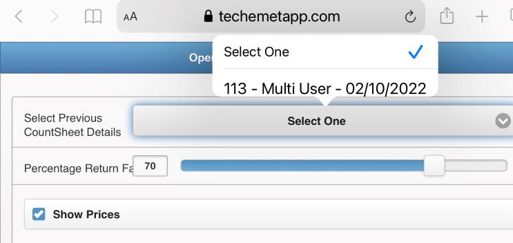 Tap on Select Previous Count Sheet Details.