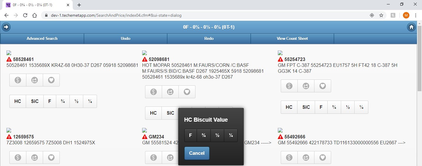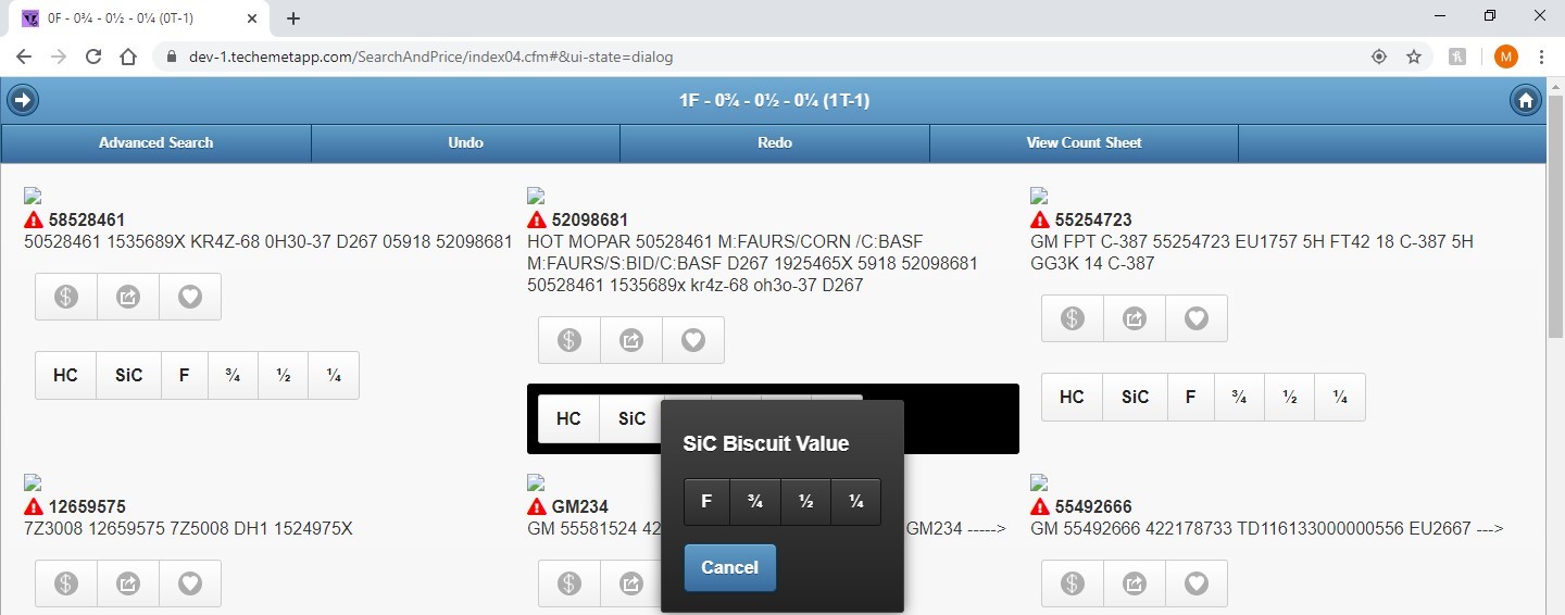 To add only the SiC Biscuit Value to the Count Sheet, tap the SiC button.