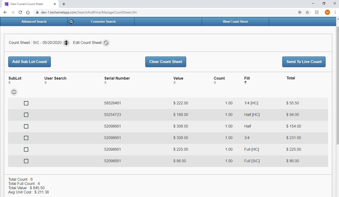 When a Count Sheet is open and you do a converter search, 2 additional buttons appear on the screen to add units to a count sheet.